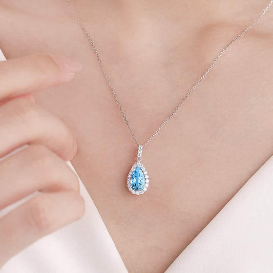 1.5ct Natural Aquamarine White 18k Gold Pendant Necklace with Diamonds