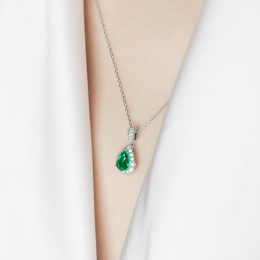 0.5ct Natural Emerald and Diamond 18k White Gold Pendant Necklace
