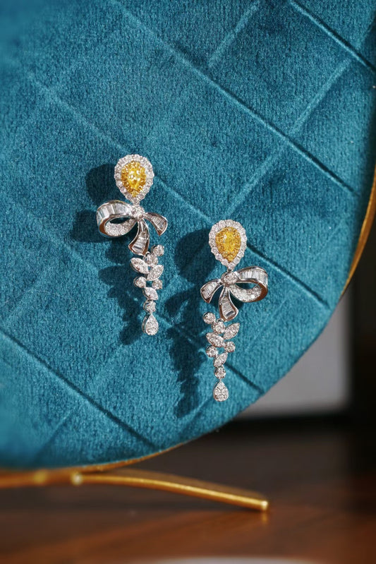 1.2ct Natural Yellow Diamond Bow Drop Earrings