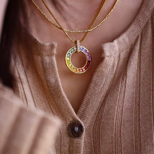 18k Circular Pendant with Multicoloured Lab-Created Sapphires