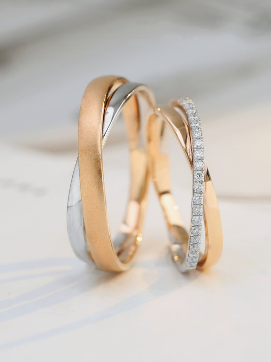 18k Gold Wedding Ring Pair with Diamonds