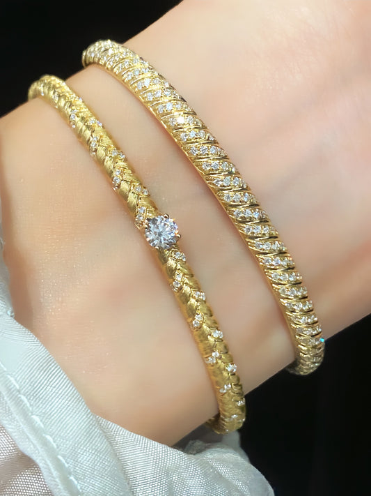 18k Gold Thread-Textured Bracelet with Diamonds