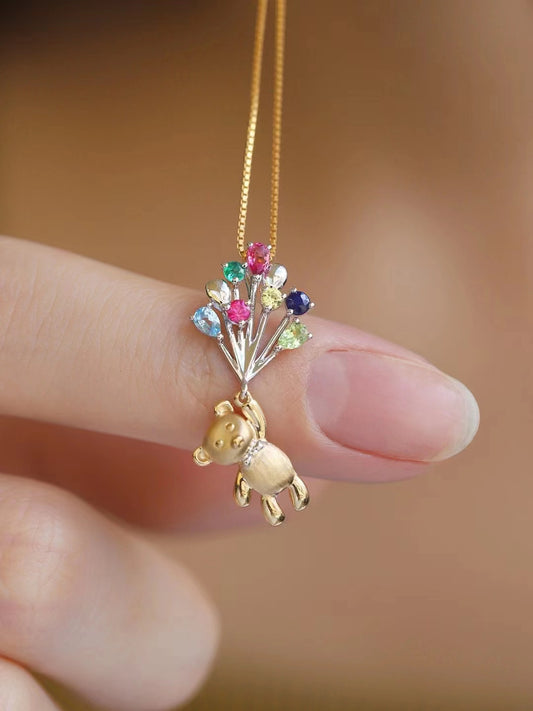 18k Gold Teddybear Pendant with Diamonds, Sapphires and Emeralds