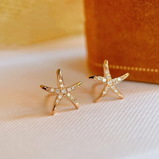 18k Gold Starfish-Shaped Ear Studs with Diamonds