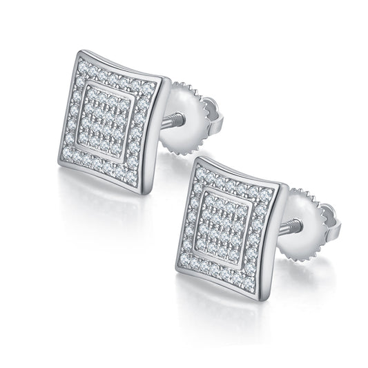 18k Gold Square Earstuds with Moissanites